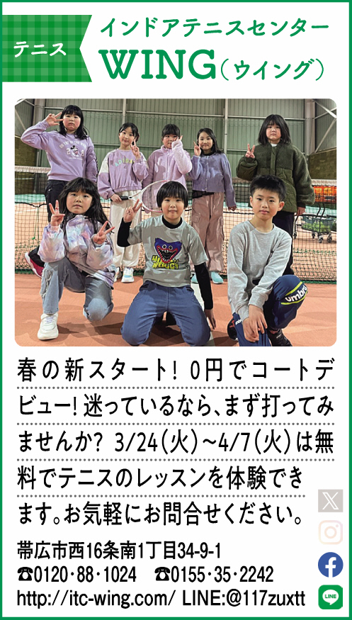 今だけ限定!無料でレッスンを体験できます! 2026/03/06 😍無料体験レッスンDAY 3/24(火)~4/7(火)まで😍 ※ウイングが初めての方に限ります。 ※以前、スクール生だった方は、別途ご相談ください! LET’S ENJOY TENNIS😁