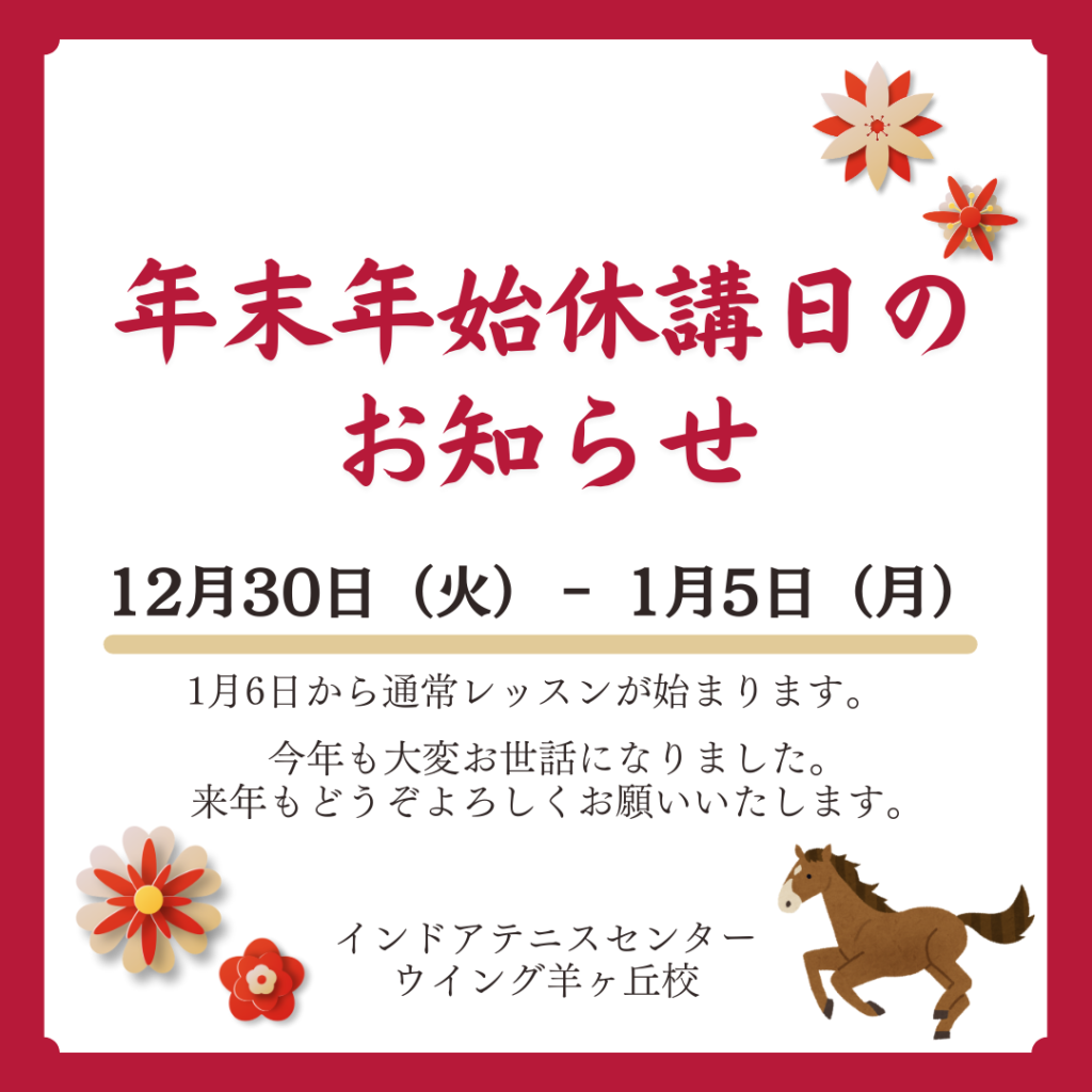 年末年始休講期間:2025年12月30日(火)~2026年1月5日(月)
