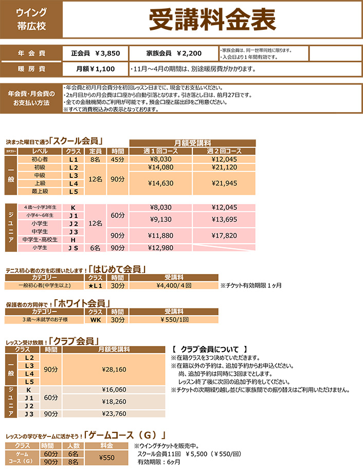 所属クラスや受講レッスン数等によって、割引額は異なります。詳しくはフロントまでお問い合わせください。